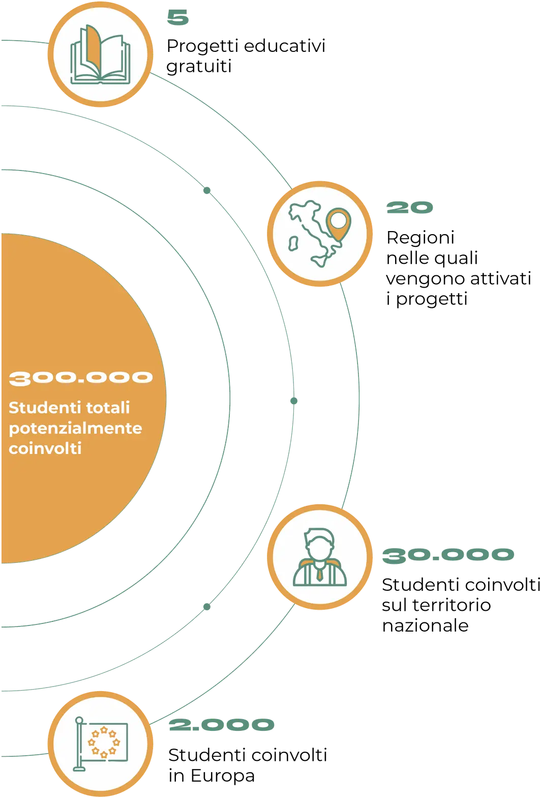 Per contrastare la povertà educativa, coinvolgendo insegnanti, studenti e studentesse e le loro famiglie, mettendo a disposizione programmi e materiali didattici da utilizzare nelle ore curriculari di educazione civica.